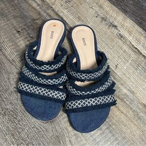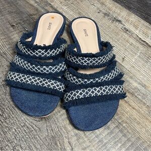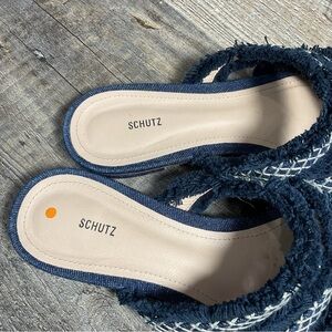Schutz Jacqueilla Denim Fringe Slide Sandal Indigo Blue size 8