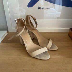 Schutz Jenny Lee Nude Suede Block Heel Sandal, Size 8