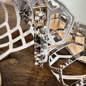 Schutz Juliana Caged Sandals 8.5 Leather Snake Open Toe Ankle Stiletto Heels