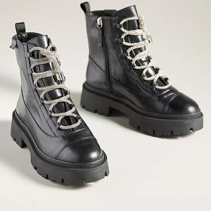 Schutz Kaile Glam Lace-Up Leather Stomper Boots Size 7B NWT