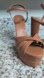 Schutz Keefa High Double Platform Sandals In Caramel Tan Nude Nappa Leather Sz 11. This is a warm deep tan perfect for darker skin tones which can be very hard to find. There are pinkish undertones to the color (rather than yellow). The sandals are in great condition with light wear as shown. This color is extremely rare and impossible to find now especially in this size. Retail for these platforms is $218. Genuine Leather made in Brazil. Heel is 5.5", platform is 2.25" and they're very comfortable/easy to walk in. Ships immediately from smoke-free home.