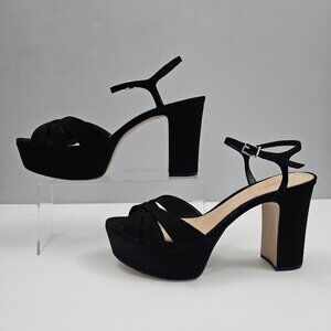 Schutz Keefa Platform Block Heel Womens 10 Black Nubuck Strappy Sandal Evening