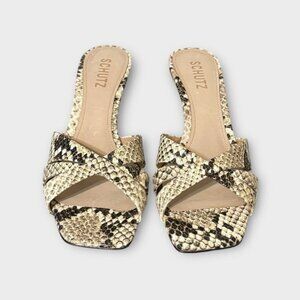 Schutz Keefa Snakeskin Leather Mule Sandals 7.5 Cream Natural NEW