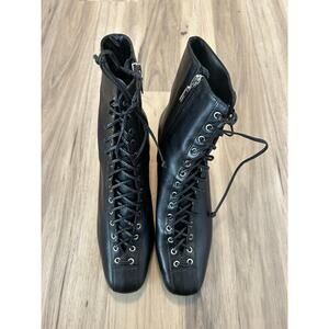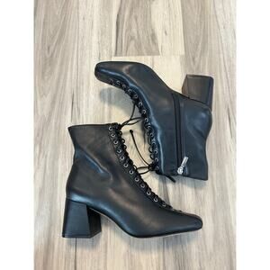 Schutz Kika Black Leather Lace-Up Boot Matte Size 8.5 B Block Heel Boots