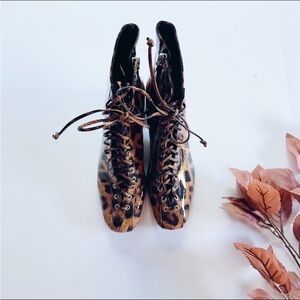 Schutz Kika Leopard Print Patent Leather Lace-Up Boot