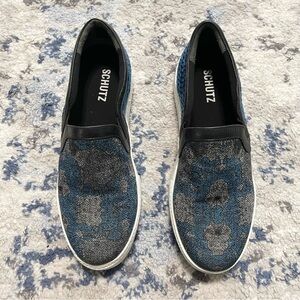Schutz Knit Leather-Trim Slip-On Platform Sneaker Shoe Size 8.5 Blue