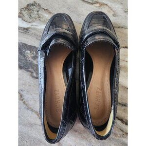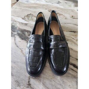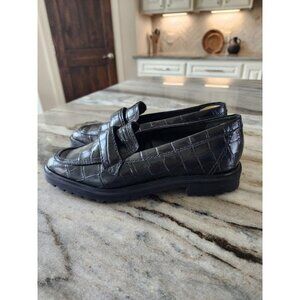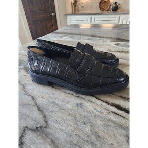 Schutz Kristin Lug Sole Platform Black Croc Embossed Leather Women's Loafer