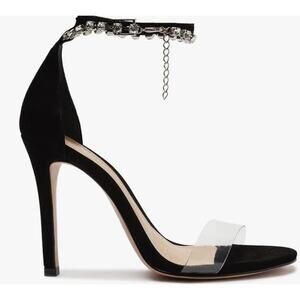 Schutz Lah Ankle Jewel Strap Heels 8.5 Black NWOT Suede Sandals Glam Cocktail