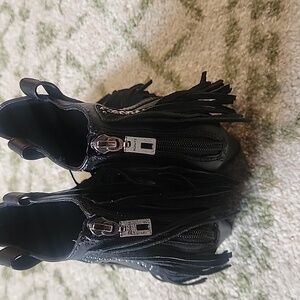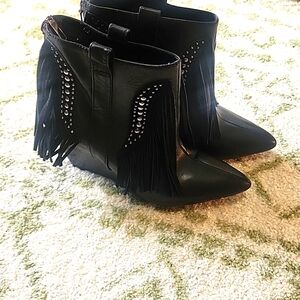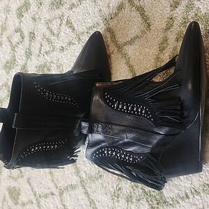 Schutz Leather Fringe Trim Studded Wedge Pointed Ankle booties 7.5