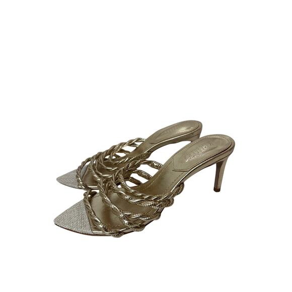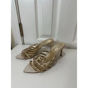 Schutz Lessie Sandals Sz 6B Gold Heels Pointed Toe MSRP $128 Nice!