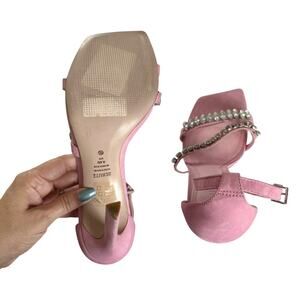 Schutz Linsey Nubuck Club Rose Pink Double Strap Stiletto Heel Sandals Size 8.5
