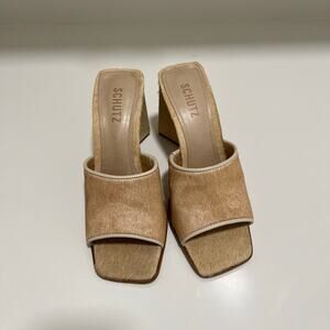 Schutz Lizah Wild Welt Mohair Heels Chunky Block Heel Tan Leather Size 8