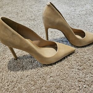In perfect condition, never worn, but check the bottoms as I tried to remove a marker. The first time you walk in them outside, the bottom will wear down a bit since it's a leather sole.