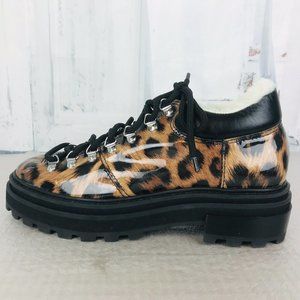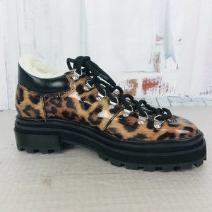Schutz Lucille Vernizes Leopard Faux Sherling Lined Lace Up Booties