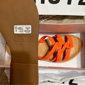 Schutz Lyra Slide Neon Orange Sandal NEW NWT