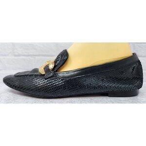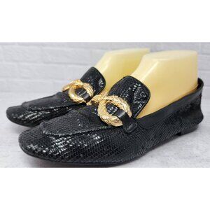 Schutz Maggy Womens Black Snake Embossed Leather Loafers sz 8 B Gold Bit Accent