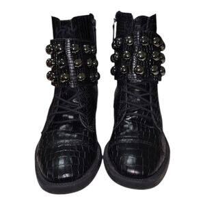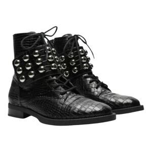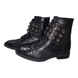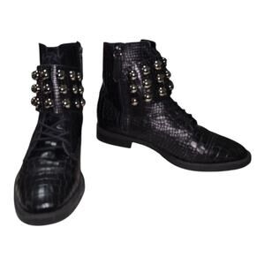 Schutz Marieta Boot in Crocco BLACK STUDDED GOTH GRUNGE COMBAT BOOTS SIZE 6.5
