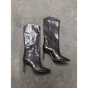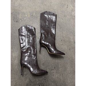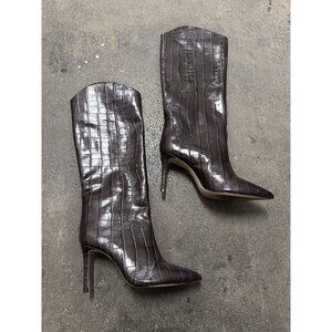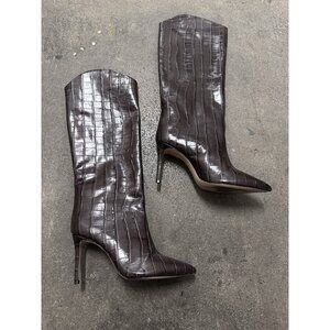Schutz Maryana Boots Dark Chocolate Brown Croc Leather 7 $258