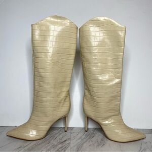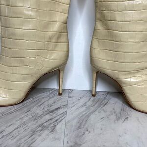 Schutz Maryana Eggshell Croc Embossed Leather Tall Heeled Boots 11B
