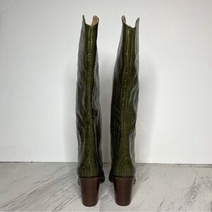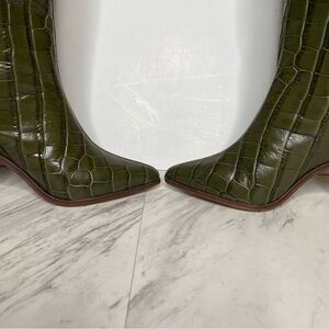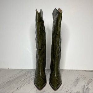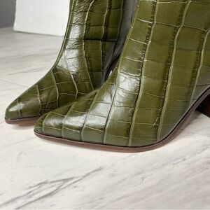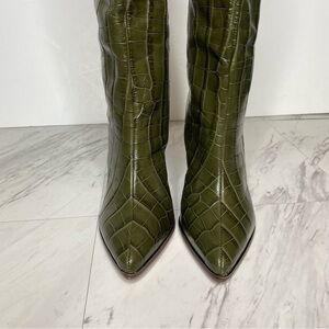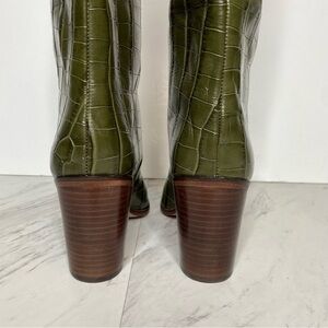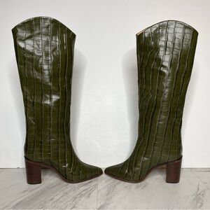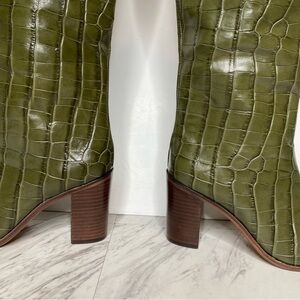 Schutz Maryana Green Croc Embossed Tall Block Heel Boot 5B