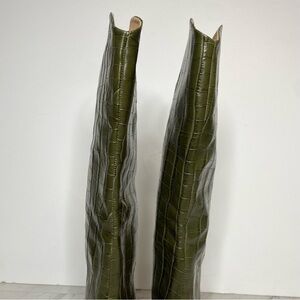 Schutz Maryana Green Crocodile Embossed Tall Block Heel Boot 5B