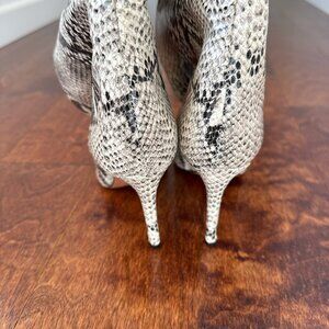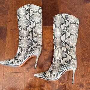 Ultra luxe snake embossed leather boots in sleek stilleto silouette. Pointy toe. Excellent condition. Leather knee high size 7 37.