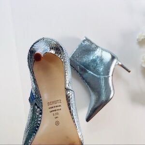 Schutz Metallic Bette Ankle Bootie In Metallic Blue Leather