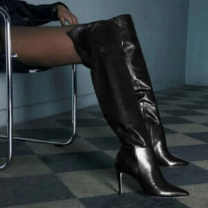 Be the next "it" girl this season when wearing the Mikki Leather Boots with your little black dress, featuring an over-the-knee silhouette, a pointed toe, and a stiletto, that'll for sure have you making a statement.