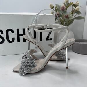 Schutz Mila Nappa Leather Rhinestone Crystal Stiletto Cream Women's 6.5 B NWB