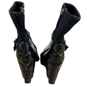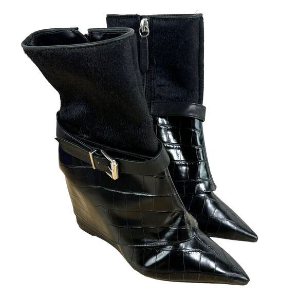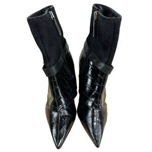 Schutz NWOB Jorian Crocodile Embossed Leather Bootie Black Size 5B Wedge Heel