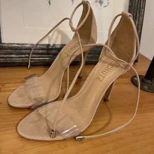 Schutz NWT Joseanna Open Toe High Heeled Sandal Leather Sole |Buckskin | Size 5B