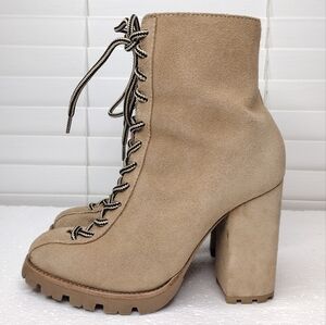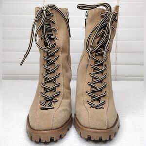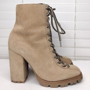 Schutz Naina Women's Leather Suede Faux Fur Lace Up Heeled Boots Size 7.5B