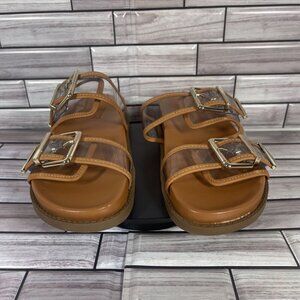 Schutz Naomi Brown Double Strap Slide Sandals Shoe Size 5.5-NEW