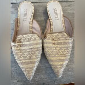 Schutz Natural Raffia Mule Slide Close Toe Tan 5
