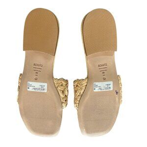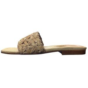 Schutz Nude Raffia Ayla Slide Sandals Leather-Sole Womens Size 8 NEW