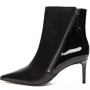 Schultz Patent Leather Kitten Heels Ankle Boots Women 7B Black Pointed Toe Zip