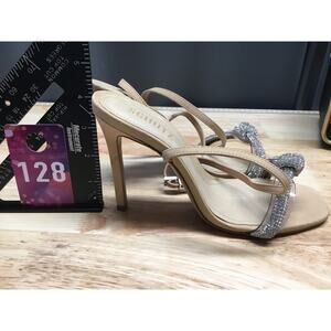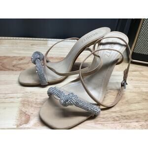 Schutz Peaky High Heel Sandals Women's 7.5 Light Beige Nubuck Embellished Bow