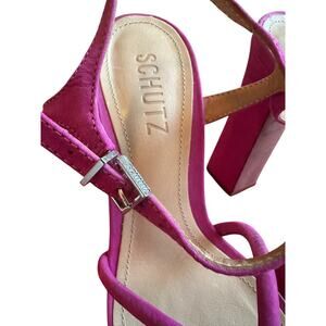 Schutz Picca Pink Suede Ankle Strap Open Toe Chunky High Heel Platform Sandals