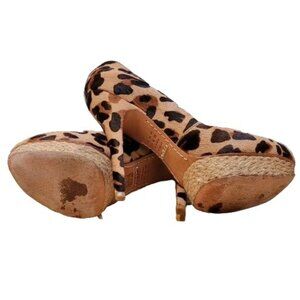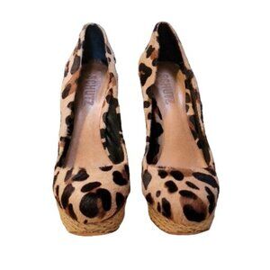 Schutz Platform Heel Pumps Women Sz 9B Calf Hair Leopard Print Espadrille Work