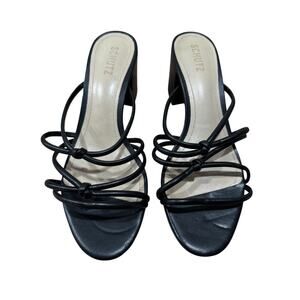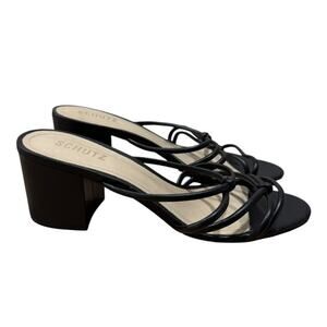 Schutz Princey Sandal Black Leather Tie Front Heels Size 9.5 Knot Block Heel