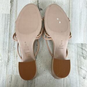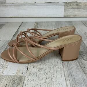 Schutz Princey Strappy Slide Sandals women's sz 11B beige leather block heel, new and never worn but there is one small scuff on back of heel. please see photos for condition details