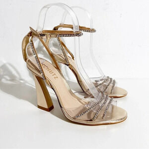 A transparent upper that's detailed with bright crystals lends a night-out ready feel to these Schutz sandals.