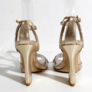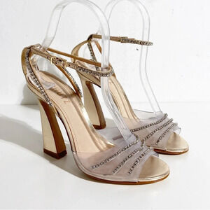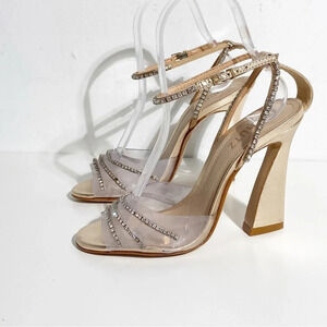 A transparent upper that's detailed with bright crystals lends a night-out ready feel to these Schutz sandals.