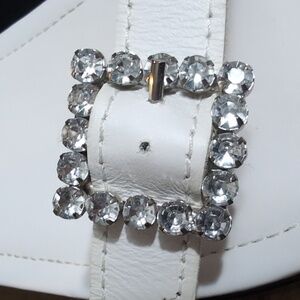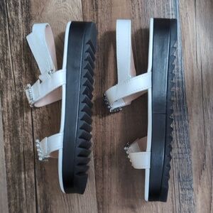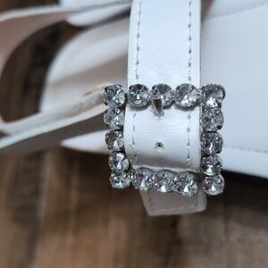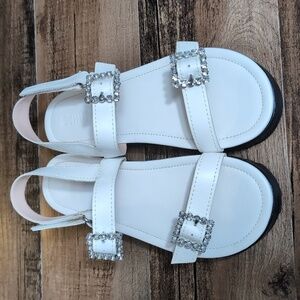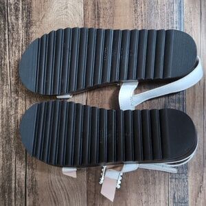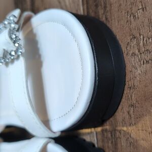 Schutz Ruth Embellished Leather Flatform Slingback Sandals Size 8.0 In White 1.5