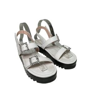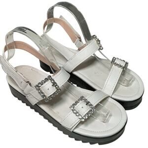 Schutz Ruth Embellished Leather Flatform Slingback Sandals White Crystal 7.5