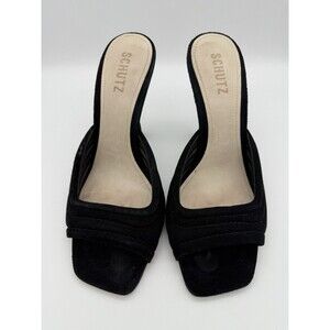 Schutz Sandal 4" Heels Womens 8B Black Stiletto Slip On Wedding Square Toe