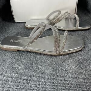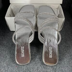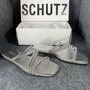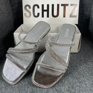 Schutz Sandalia Salto Rasteiro Jeweled Sandals Women's 11B NIB Cristal Formal