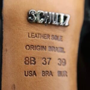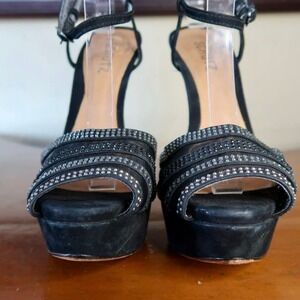 Schutz Sandals Black Flared Heels Ankle Embellished Size 8