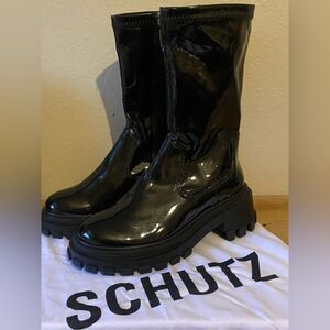 Schutz | Schutz Kendy black patent leather mid-calf boots Lug sole NWOB size 6