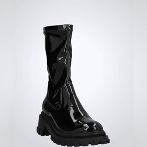 The Kendy Boot is a mid-calf silhouette crafted from leather and set on a fashion-forward lug sole for tough-chic moments. Materials: Patent Leather | TR lining Jelly outsole Upper format: Plain upper Rubber patch at the heel. Heel Type: Low heel Heel Style: Tractor Closure Type: Zip closure Toe Style: Round toe Counter Type: Closed Shaft Circumference: 11.84in | 296mm Shaft Height: 10.08in | 252mm Platform Height: 35mm Heel Height: 2.5in | 65mm New without box out box. Smoke free home.